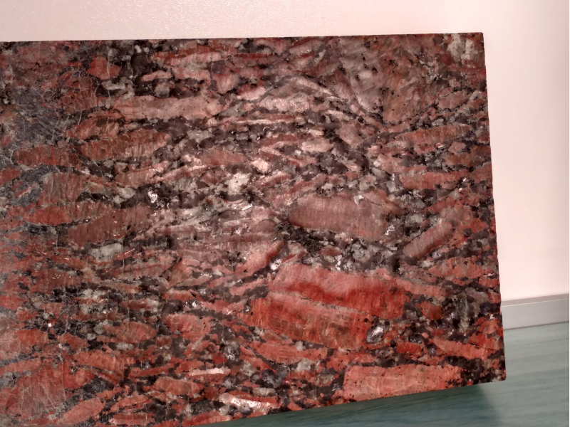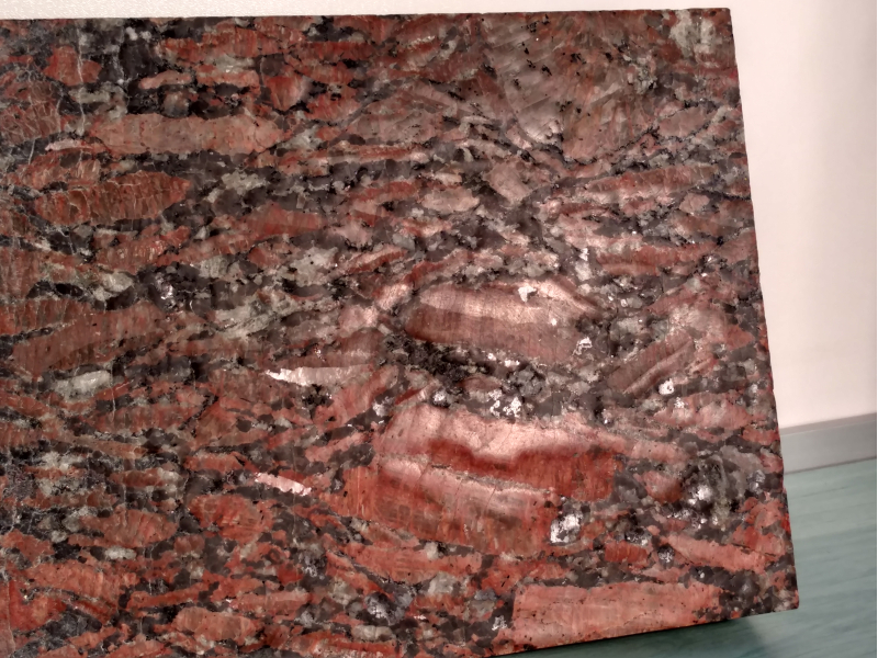 Брашировка осуществлялась вручную с использованием шлифмашинки STONECRAFT-100-1200RSD. В процессе работы были использованы алмазные щетки, номера 24, 36, 60, 120, 240, 500. Образец гранита на фото, не обрабатывался лаком, воском либо другим импрегнантом.