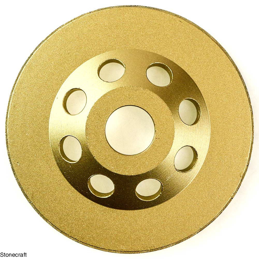 № 1 Диаметр 100 мм. Предназначена для грубой шлифовки гранита. Размер зерна 40/50. Высота сегмента 6 мм. Ширина 20 мм. Крепление под шпиндель М14.