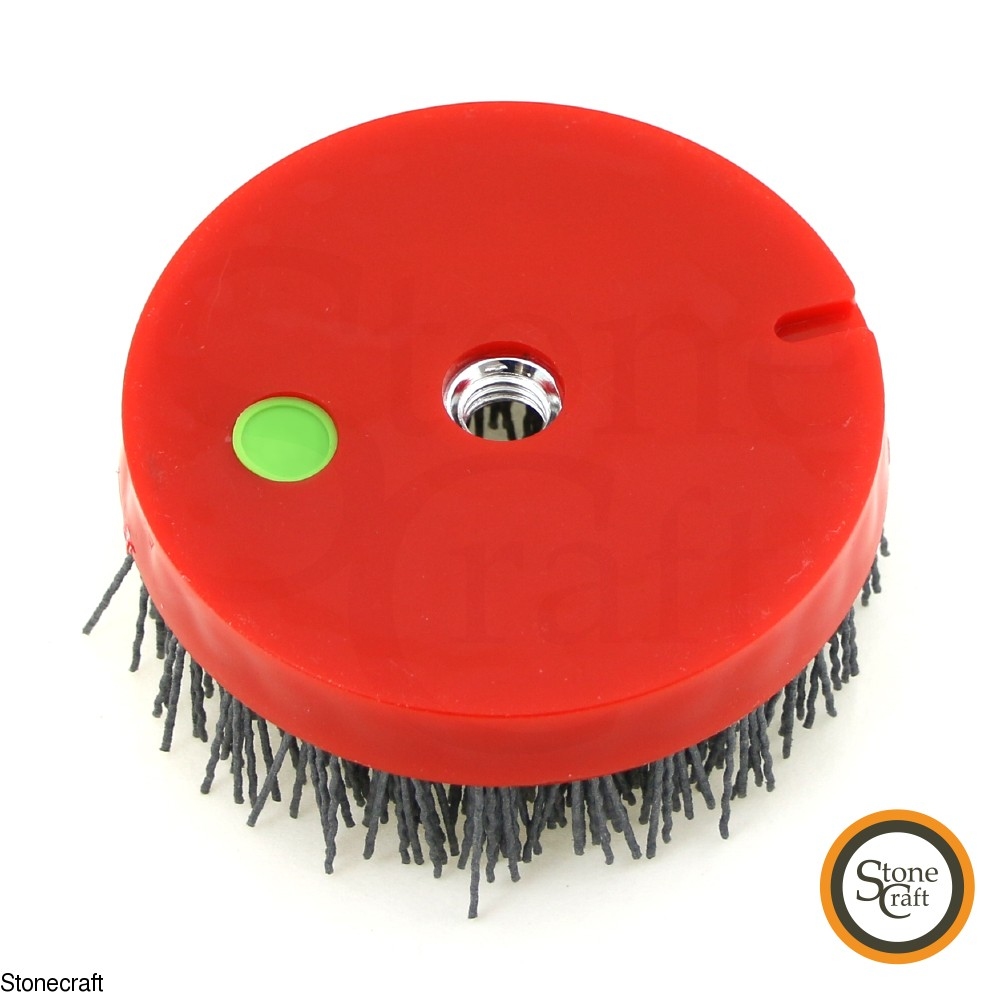 Специальные щетки с капроновым волокном, содержащим абразив - карбид кремния. Применяются для механической обработки камня “под антику”, d 110 mm, Резьба М14 плоская поверхность со стороны крепления. Использование номера 500 позволяет добиться блеска на брашируемой поверхности.