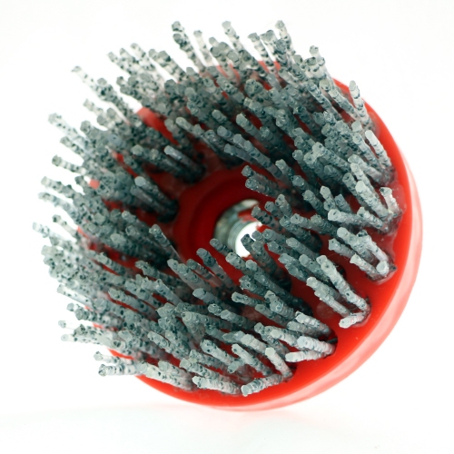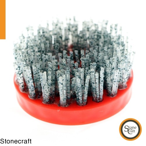 Спеціальні щітки з капроновим волокном, що містить абразив - карбід кремнію. Застосовуються для механічної обробки каменю "під античність". d 100 mm, Різьблення М14 та кріплення "равлик".