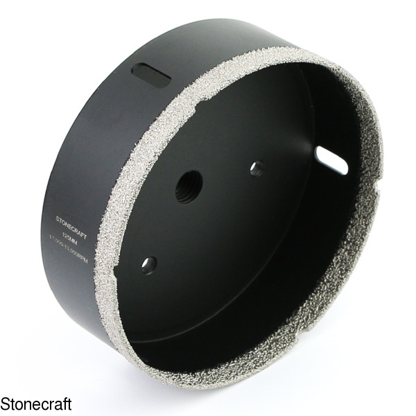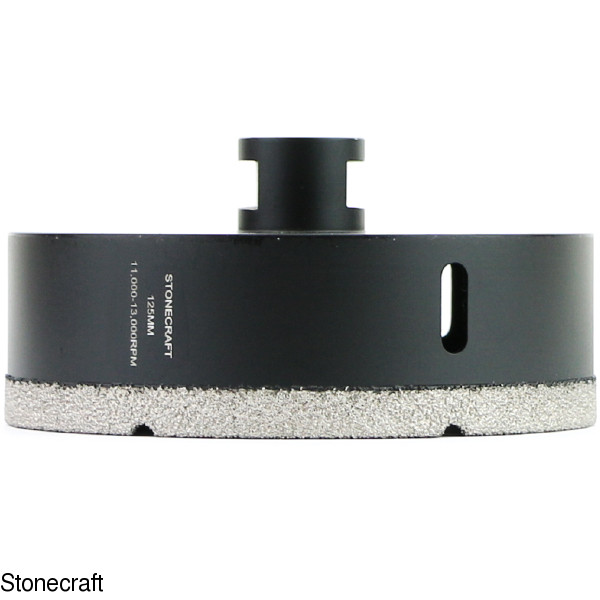 Алмазна коронка d 125 мм, різьблення М14, глибина свердління 35 мм. Висота алмазного напилення 10 мм. Для сверління керамограніту без води
