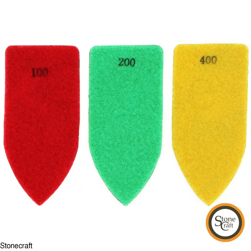 Алмазна терка, номер 400. Виконана у вигляді праски, для можливості обробки у внутрішніх кутах каменю та інших важкодоступних місцях. Кріплення - велкро (петля).