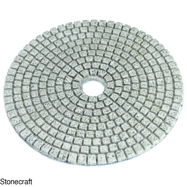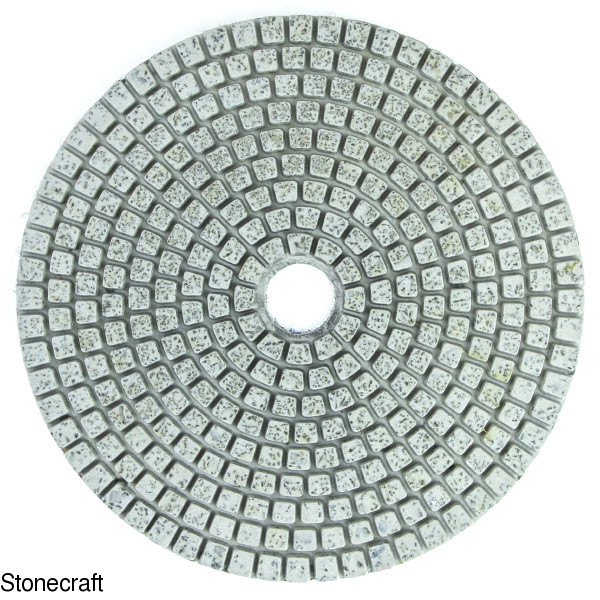 Металізований алмазний шліфувальний круг тип V № 50, d 125 мм "обдир" білого кольору ST4 універсальний, для шліфування з водою та без води. Рекомендовані оберти до 4500 об/хв (бажано з алюмінієвим тримачем, який добре відводить тепло). Оновлена формула. Швидко та легко шліфує граніт, керамограніт, мармур, штучний камінь, бетон та інший камінь.