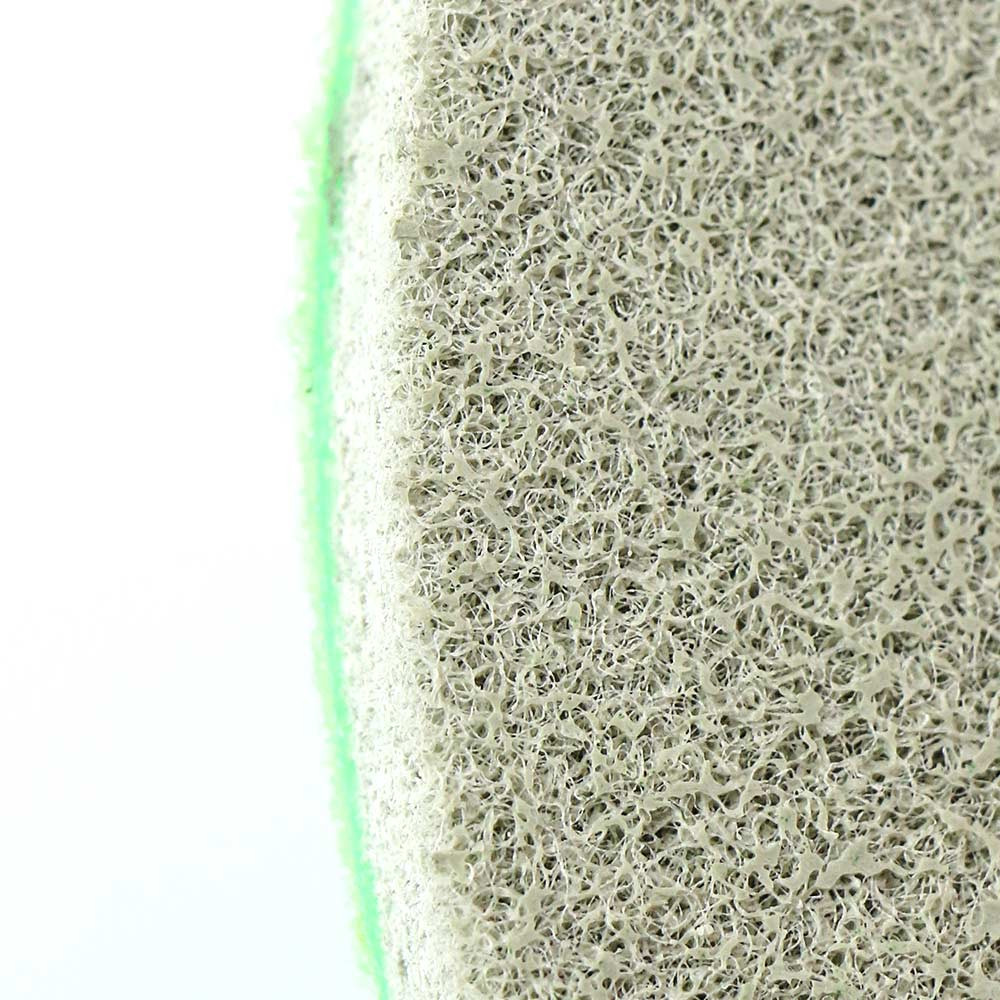 Однією з ключових особливостей нашого алмазного спонжу № 5 є його кислотовмісна формула, до складу спонжу крім алмазного абразиву та нейлонового волокна входить ще й кристалізатор мармуру. Це дозволяє ефективно обробляти поверхні, що складаються з кальцієвого карбонату (CaCO3), таких як мармур, вапняк, кальцит.
