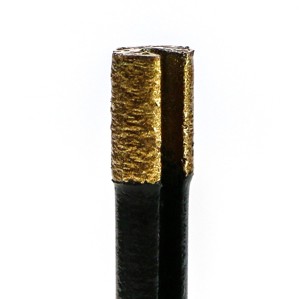 Алмазне свердло d6 мм, загальна довжина 75 мм, хвостовик діаметром 6 мм. Спечений алмазний сегмент висотою 9 мм для свердління граніту з водою. Швидкість обертання від 500 до 10000 об/хв. Діаметр 6 мм. Глибина свердління 42 мм