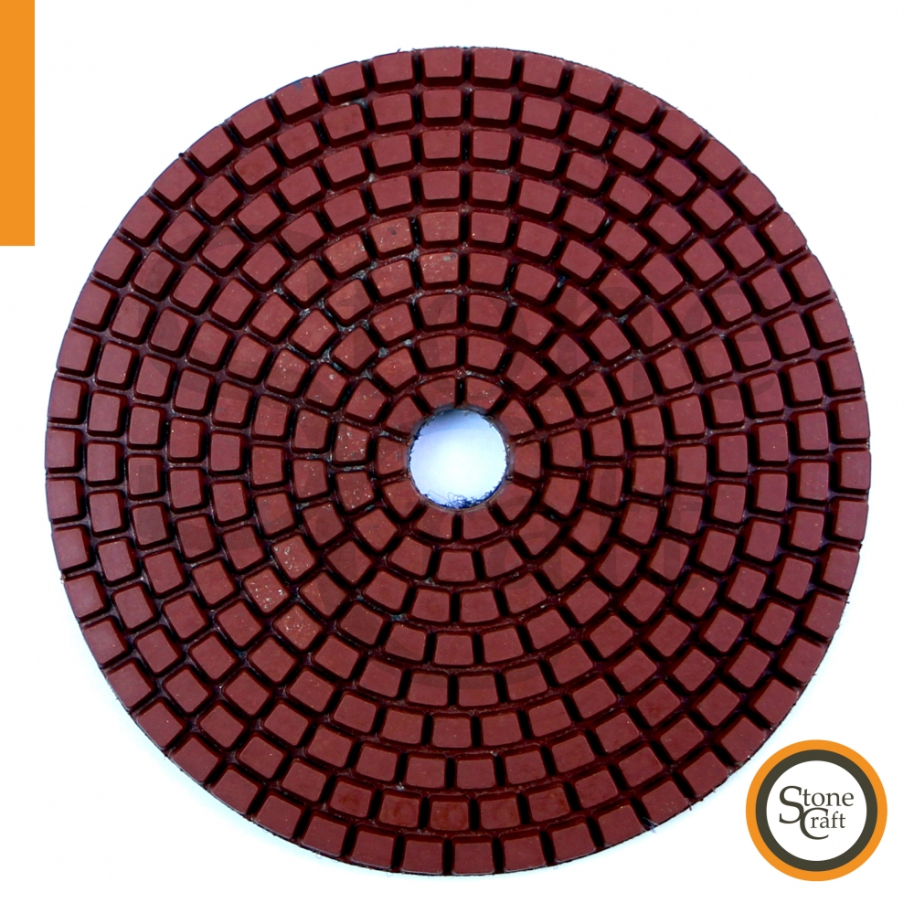 Гнучкий алмазний шліфувальний круг клас АА. Умовна насиченість алмазним порошком 15%. Використовується при шліфовці та поліровці ручним інструментом, з водяним охолодженням, будь-яких виробів з граніту, мармуру, кварцу, композитного каменю, тераццо, керамограніту. Номери від 30 до 3000