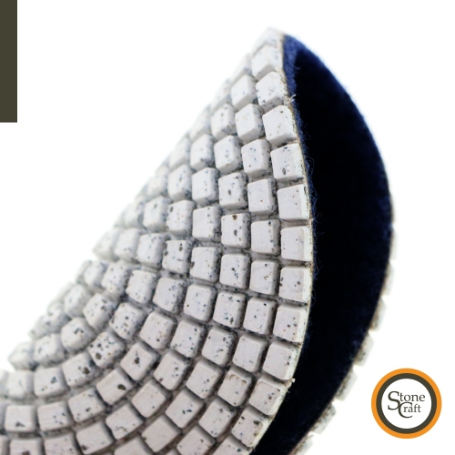 Універсальні алмазні гнучкі шліфувальні круги (липучки, черепашки) застосовуються для шліфування та полірування будь-яких виробів з граніту, мармуру, террацо, бетонних поверхонь і штучного каменю. Шліфувальний круг являє собою гнучку полімерну основу, яка містить кристали алмазу певного розміру. Система кріплення "Velcro" дозволяє швидко робити заміну круга. Рекомендується використовувати з професійною полировальною машинкою з центральним підведенням води STONECRAFT-100-1200RSD. Універсальні шліфкруги використовуються як для мокрого так і для сухого шліфування, проте використовуючи воду Ви збільшуєте термін експлуатації круга. Такі матеріали як габро та штучний камінь ми рекомендуємо полірувати з використанням води. При поліруванні стежте за тим, щоб не перегрівати круг. Рекомендовані обороти від 3000 до 1000 об / хв (чим вище номер, тим нижче обороти). Якщо Ви додаєте воду під час полірування, то кількість води має поступово знижуватися при переході на більш високий номер.