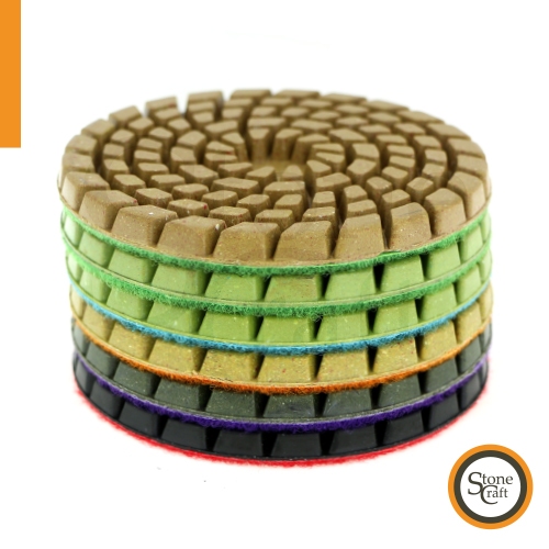 Для полірування бетонних поверхонь з використанням води. Діаметр 100 мм. Товщина 6 мм. Кріплення велкро. Концентрація алмазного порошку 8% об'ємних.