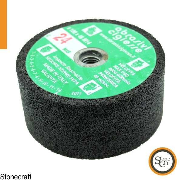 Діаметр 80 мм, висота 46 мм, різьба М14 (кріплення на болгарку). Призначення - сухе шліфування граніту, мармуру. Абразив корунд. Італія, RPF Fbrasivi srl.