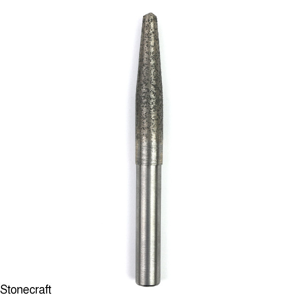 Фреза алмазна конусна спечена d 12 мм SKT 9.1 - професійна фреза для обробки граніту на верстатах з ЧПУ. Алмазний сегмент h 60 мм, d 12 мм, зерно 35/40. Кут конусу 11°. Довжина фрези 130 мм, діаметр хвостовика 12 мм. При обробці необхідно використовувати воду для охолодження фрези.