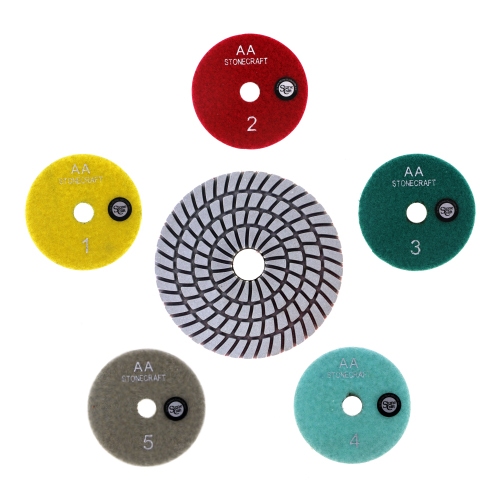 Крок 4 гнучкий шліф круг d 100 мм це полімерна основа, яка вміщує алмазний порошок. Насиченість алмазним порошком - 16%. Рекомендовано використання з водою, при оборотах до 2600 об / хв.
