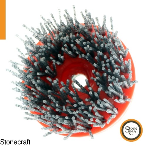 Спеціальні щітки з капронових волокном, що містить абразив - карбід кремнію. Застосовуються для механічної обробки каменю "під античність" d 110 mm, Різьблення М14 пласка поверхня з боку кріплення.