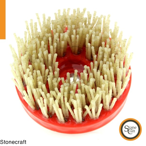 Діаметр щітки 110 мм. Абразив - алмаз. Кріплення різьблення М14. Наявність води - обов'язкова. Сила притиску визначає глибину обробки, але надмірний тиск на щітку може привести до деформації ліски та псування інструменту.