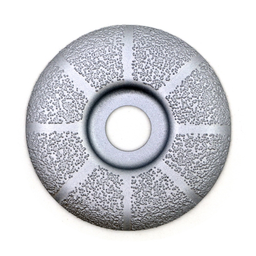 Зовнішній діаметр 100 мм, посадочний отвір 22,23 мм. Краї заокруглені. Вакуумне алмазне напилення, зерно 35/40 grit Призначення - сухе шліфування мармуру, пісковику, вапняку